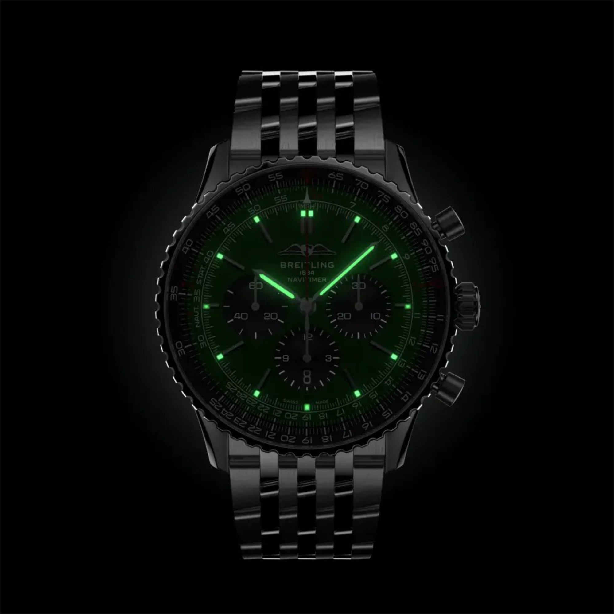 Dunkelgrün mit farblich abgesetzten Chronographenzählern und