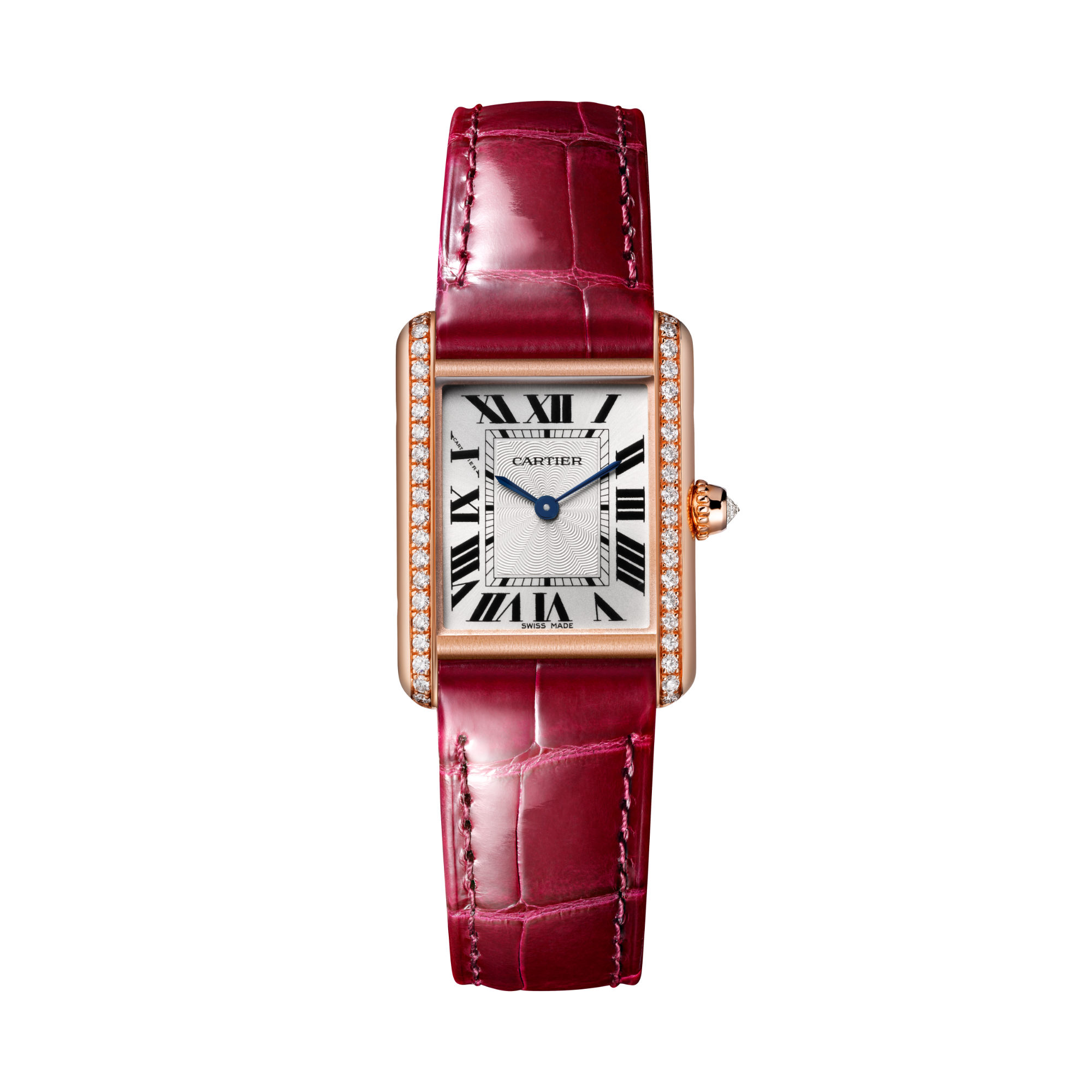 Mehrkantaufzugskrone aus 750/- Roségold mit einem facettierten Saphir besetzt