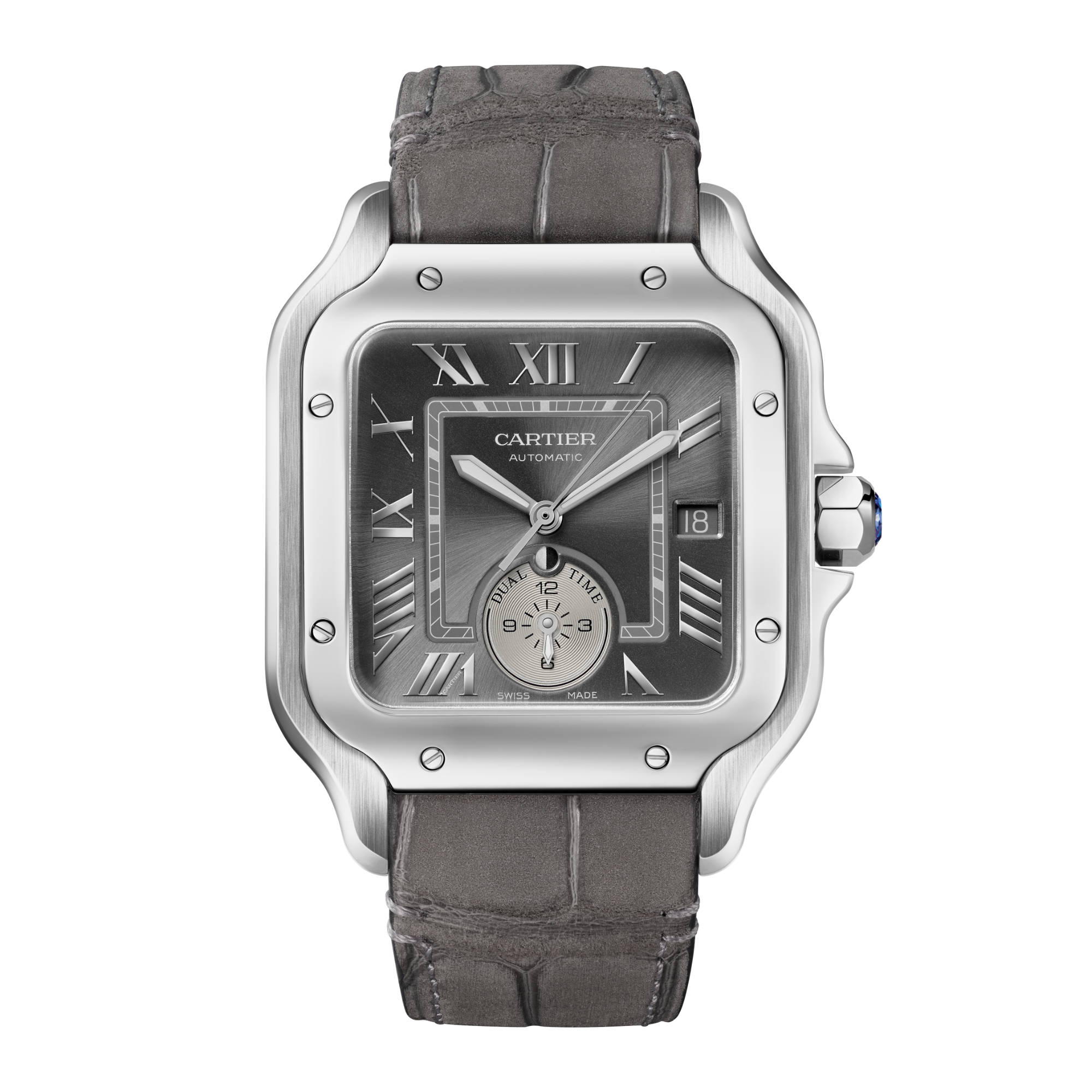 Zusätzlich: graues Alligatorlederarmband mit austauschbarer Faltschließe aus Edelstahl