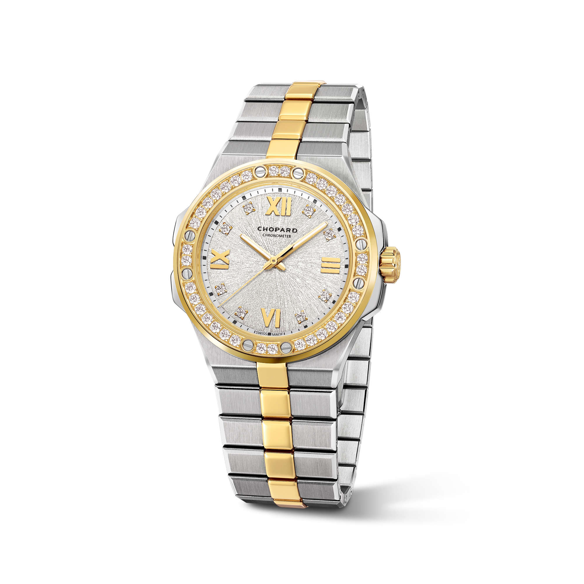 Ref. 298617-4001 - Mit Alpine Eagle hat Chopard eine moderne Sportkollektion mit klarem Design und ausgefeilter Mechanik geschaffen. Heute wird die Kollektion um ein neues Modell mit einem Durchmesser von 33 mm ergänzt, das erstmals den Glanz von Lucent Steel™ mit dem Schimmer von Gelbgold kombiniert. Dieses funkelnde Modell ließ sich von der Schönheit der Natur inspirieren und verfügt über ein Zifferblatt in der Farbe Valsgrau, dessen Reinheit durch diamantbesetzte Indizes betont wird. In Sachen Technik macht es keine Kompromisse und ist mit dem Automatikwerk Chopard 09.01-C ausgestattet, das eine Gangreserve von 42 Stunden gewährleistet.