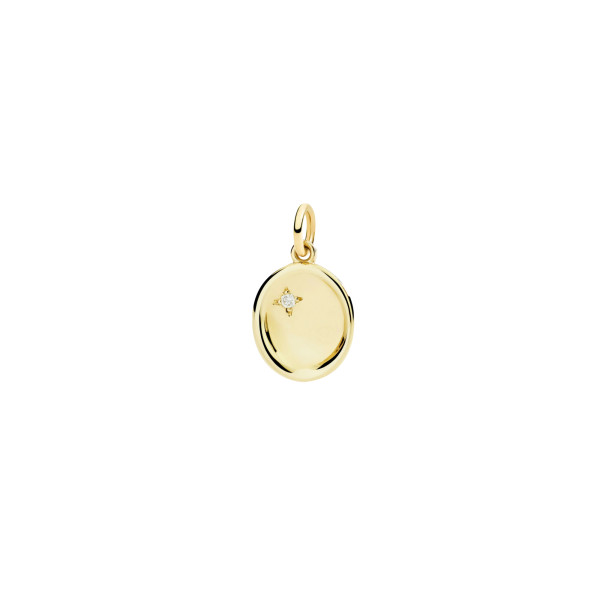 Ref. DMC5020-SIGNE-DB09G - Der Anhänger Sigillo zeichnet sich durch seine beiden archetypischen und bedeutungsvollen Formen aus: das Quadrat und das Oval. In der ovalen Version aus 9 Karat Gelbgold ziert ein weißer Diamant die satinierte Oberfläche und unterstreicht deren Leuchtkraft und Eleganz. Sigillo kann allein oder auf neue und persönliche Weise kombiniert getragen werden und wird so zu einer bewegten Geschichte – ein Schmuckstück, das sich anpasst, verwandelt und die Identität seines Trägers widerspiegelt.