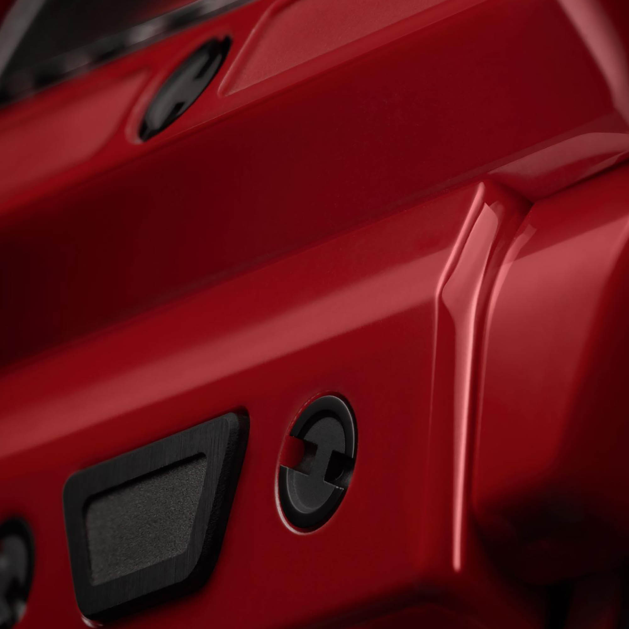 Lünette: Polierte und glasperlgestrahlte rote Keramik mit 6 h-förmigen Schrauben aus Titan