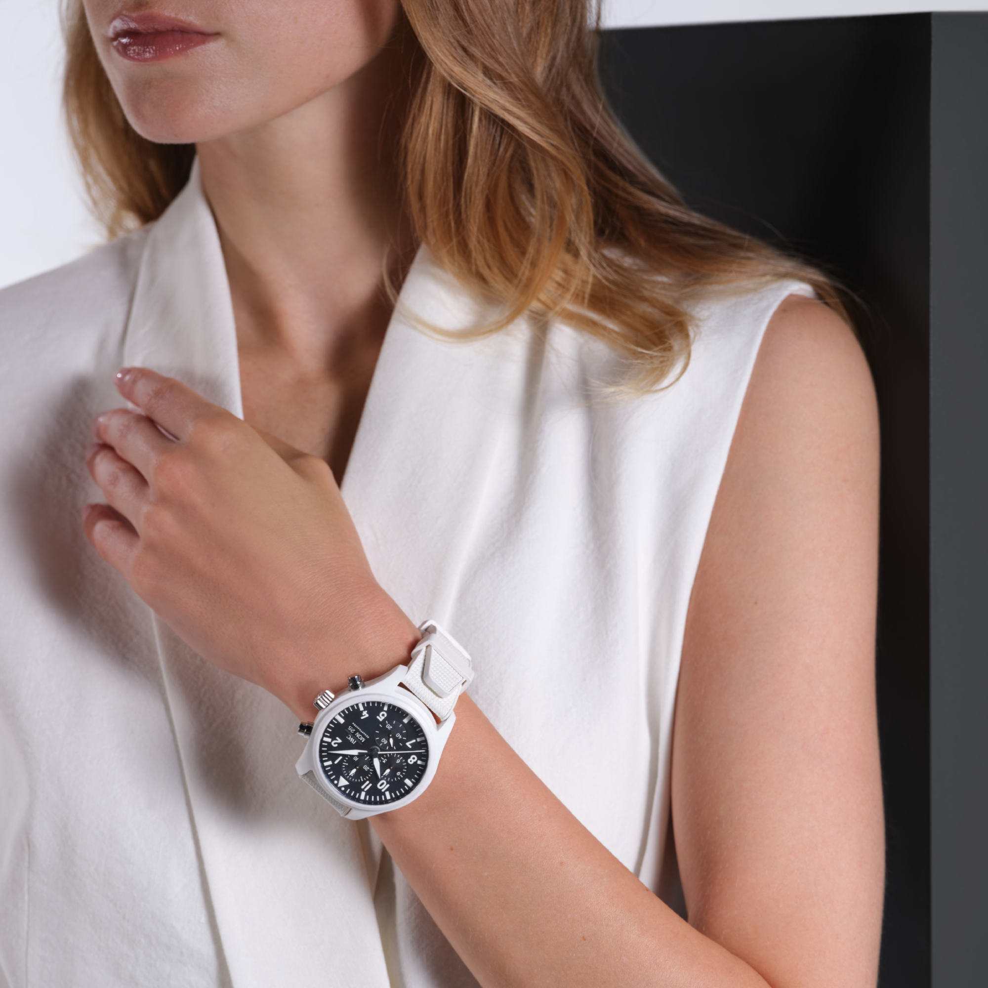 Schwarze Zeiger und Appliken mit Leuchtmasse in Weiss