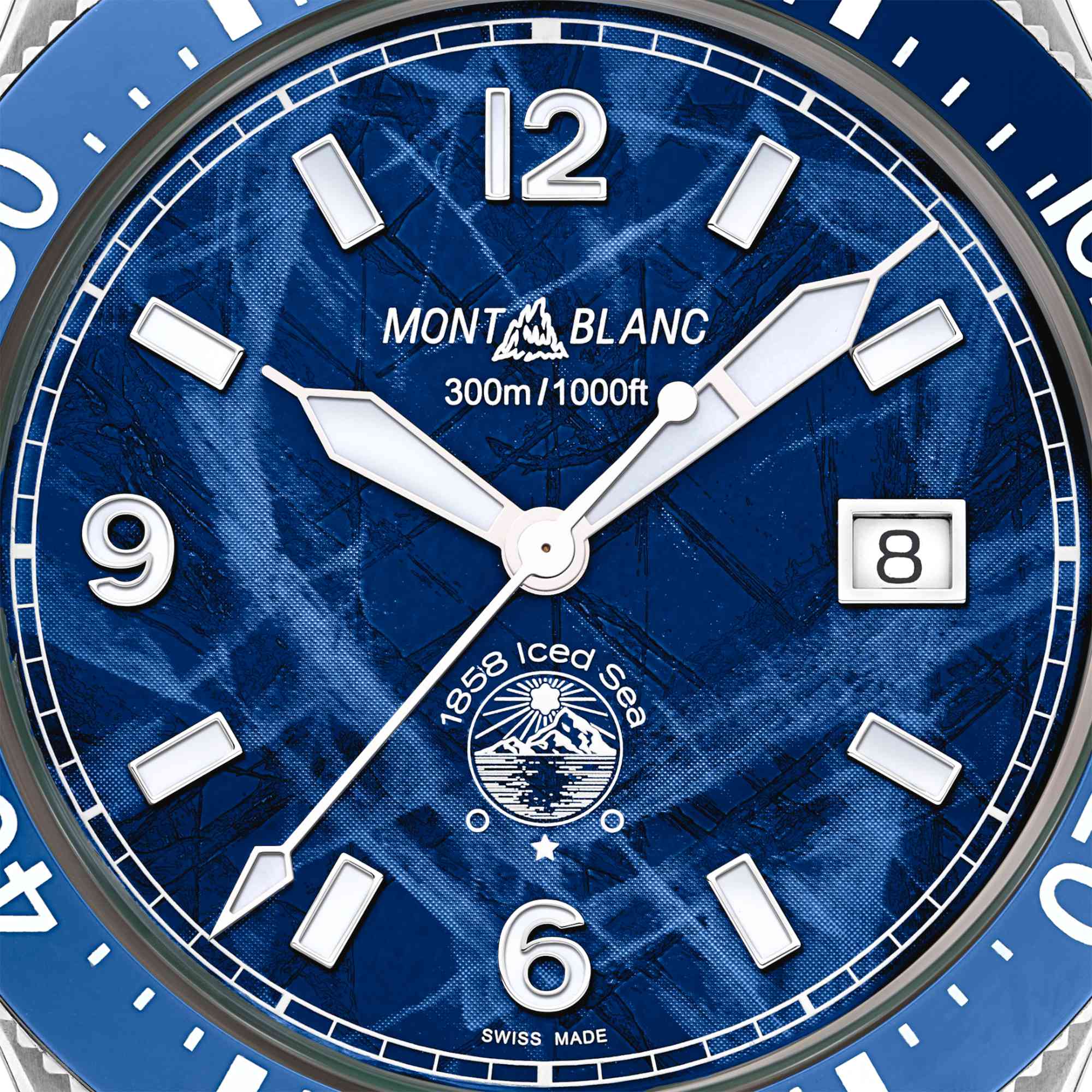 Zifferblatt mit blauem Gletschermuster