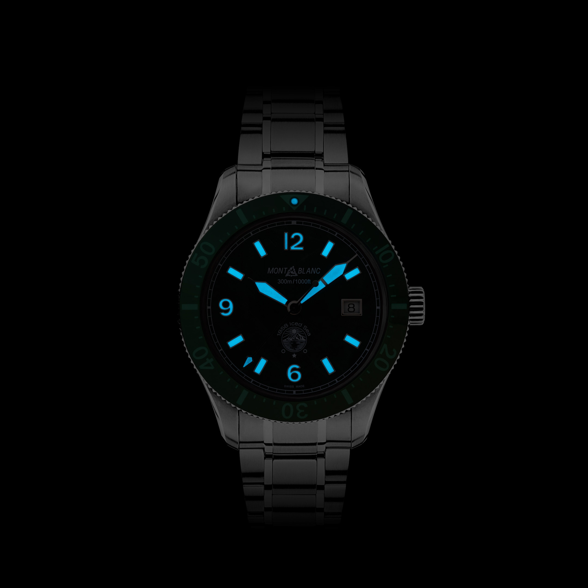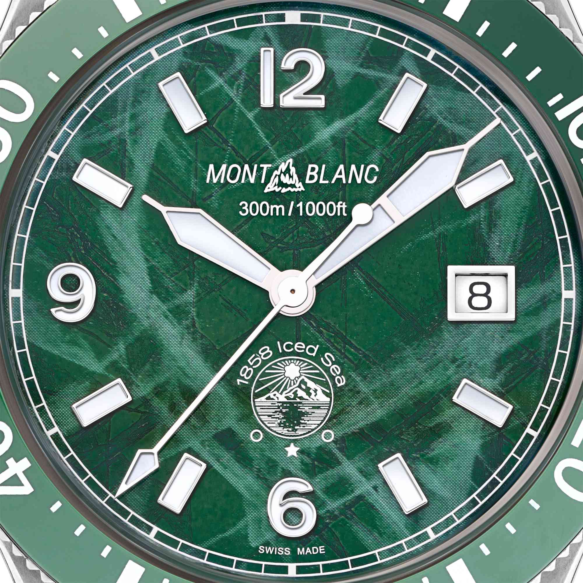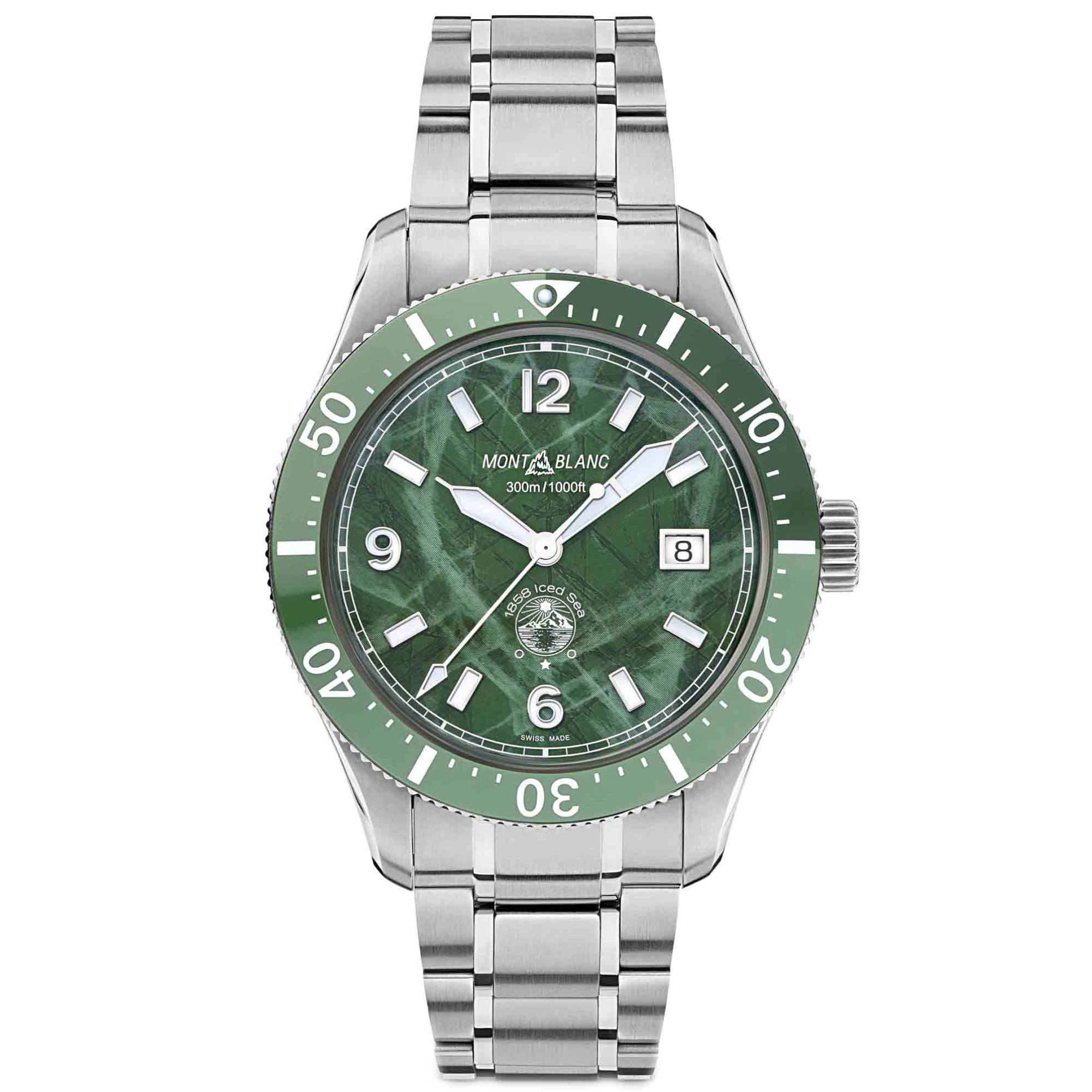 Zifferblatt mit grünem Gletschermuster