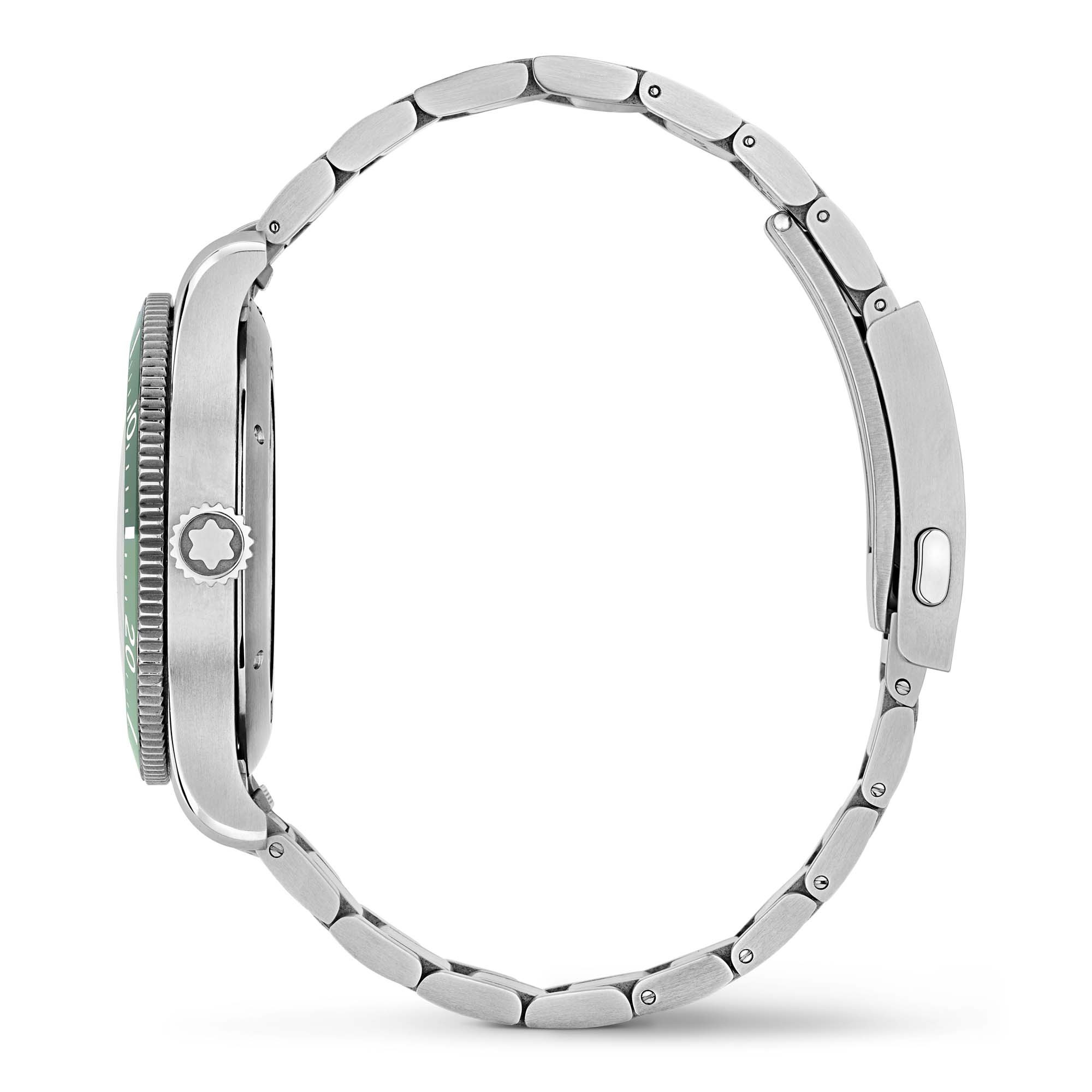 Krone: Verschraubt und geriffelt aus Edelstahl mit hervorstehendem Montblanc Emblem