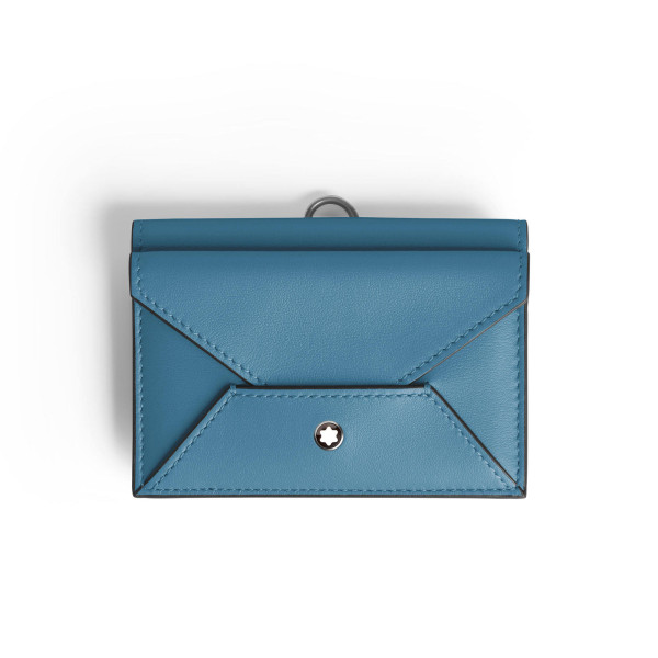 Ref. MB199313 - Dieses kompakte und praktische Kartenetui in Rauchblau bietet Platz für bis zu vier Kreditkarten. Als Hommage an die Welt des Schreibens erinnert seine Form an einen Umschlag. Für weitere Raffinesse sorgen die weiche Ledertextur und das Montblanc Emblem auf dem Umschlag. Außen befinden sich zudem ein offenes Fach und ein Ring, um das Kartenetui an Schlüsseln oder größeren Taschen zu befestigen.
