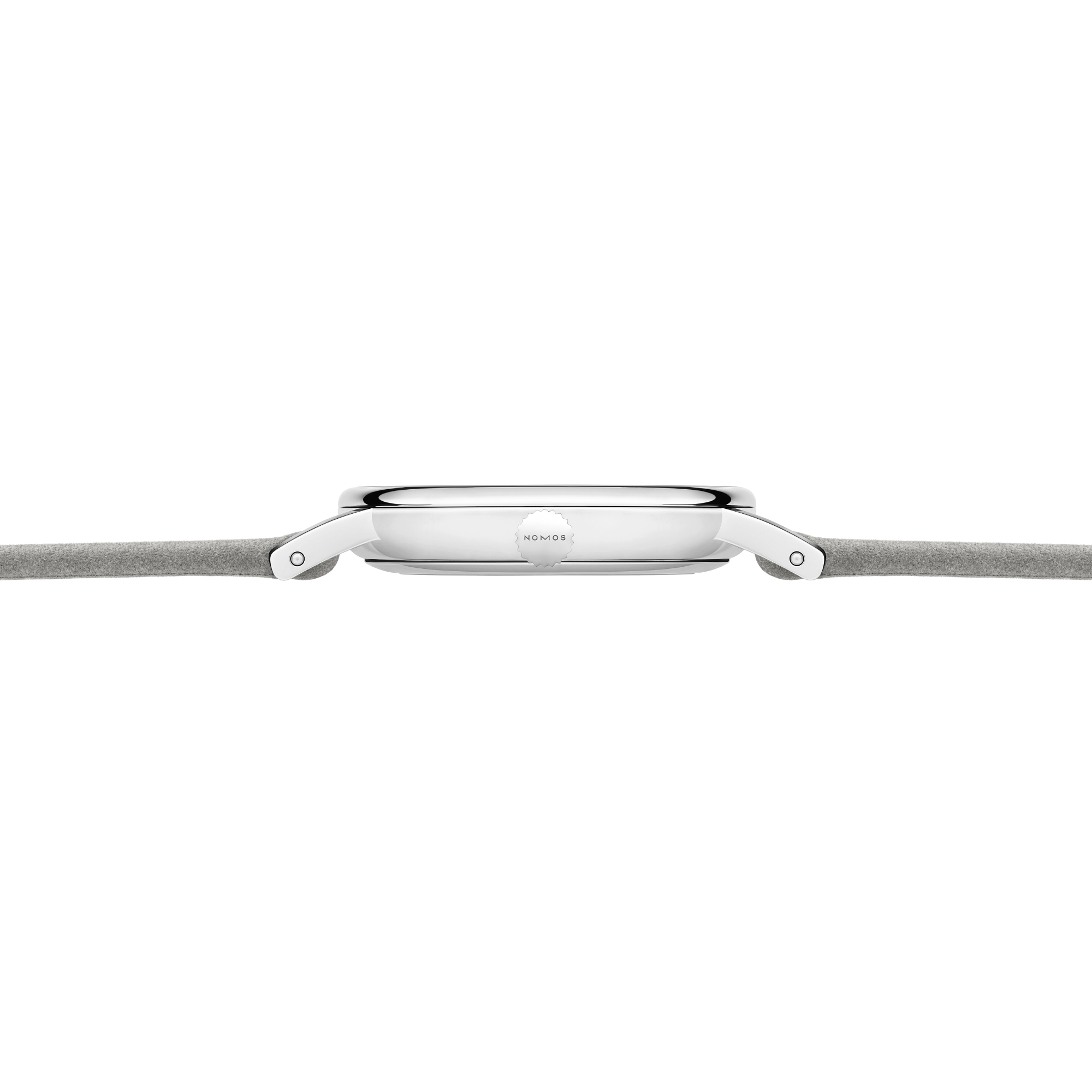 Rhodinierte Werkoberflächen mit Glashütter Streifenschliff und NOMOS-Perlage