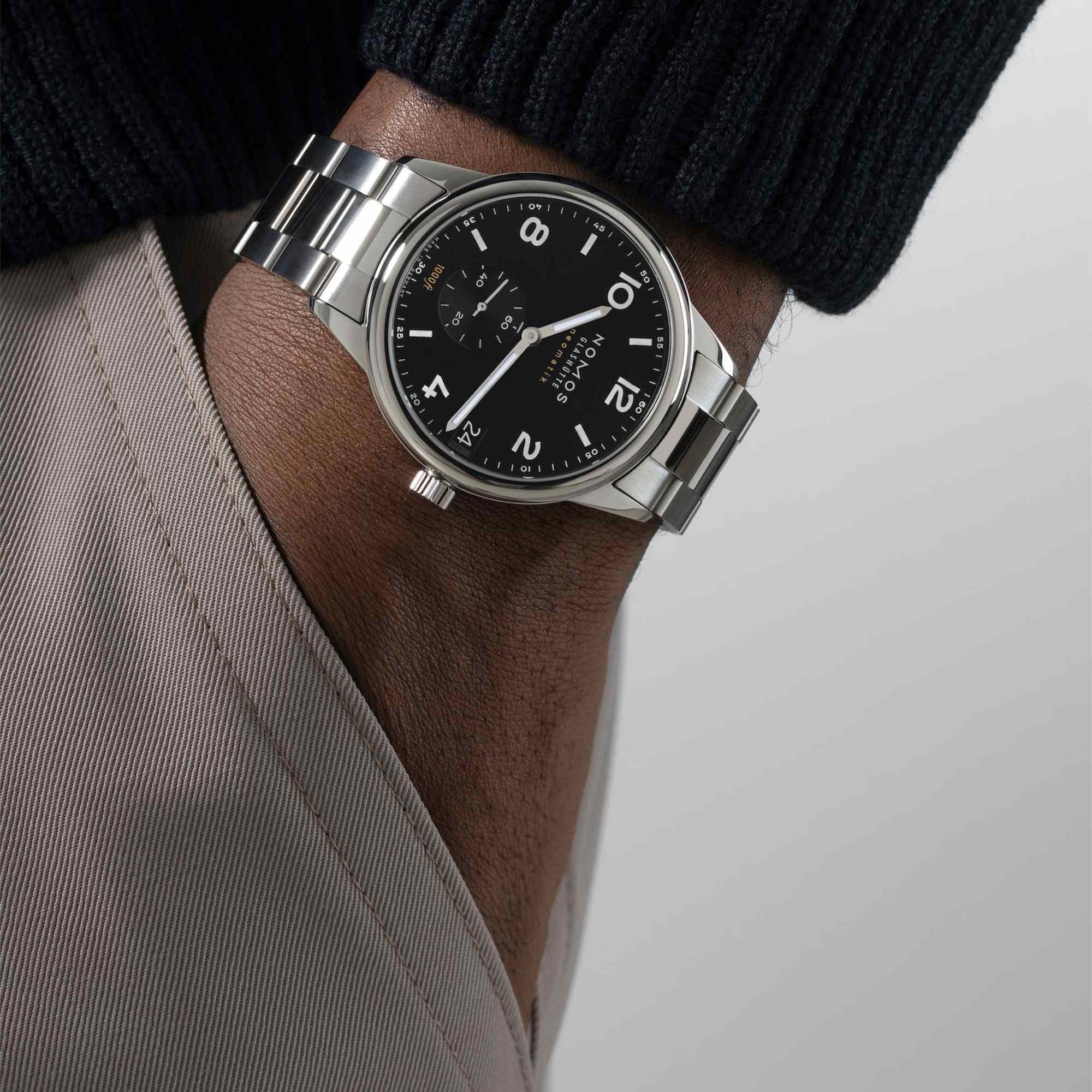 rhodinierte Werkoberflächen mit Glashütter Streifenschliff und NOMOS-Perlage