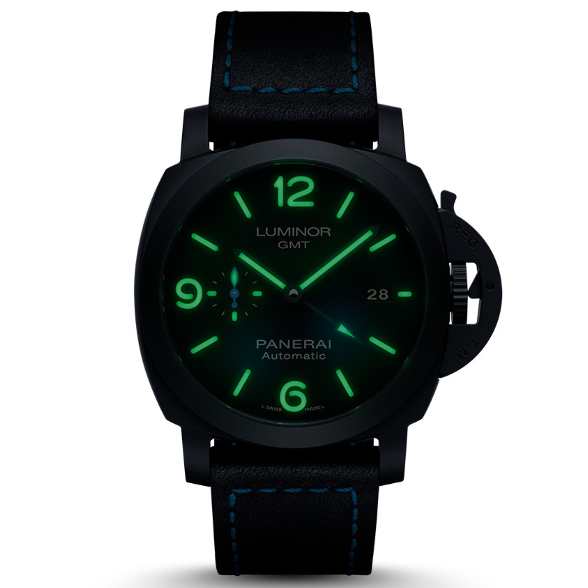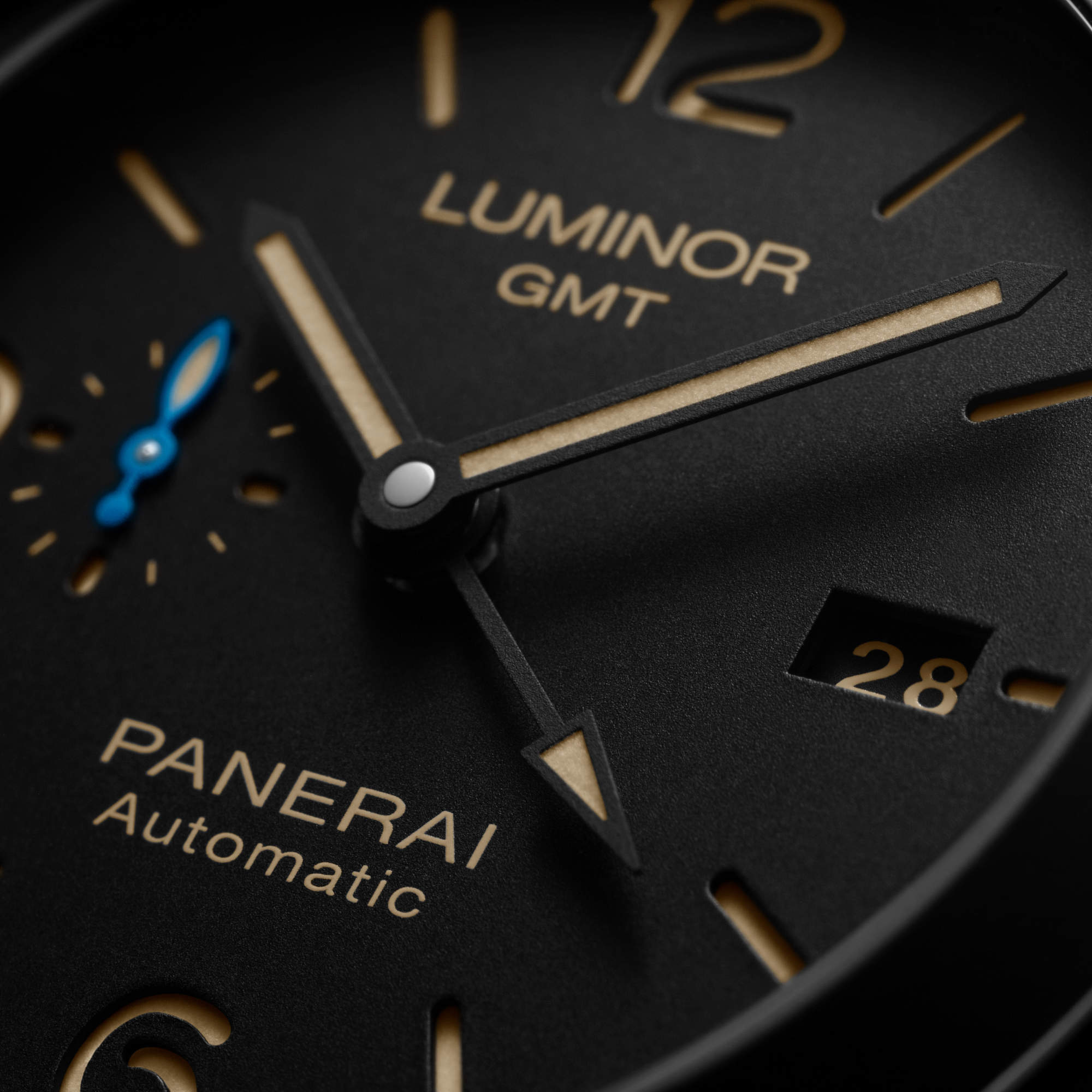 Schwarzes „Sandwich“-Zifferblatt mit fluoreszierenden arabischen