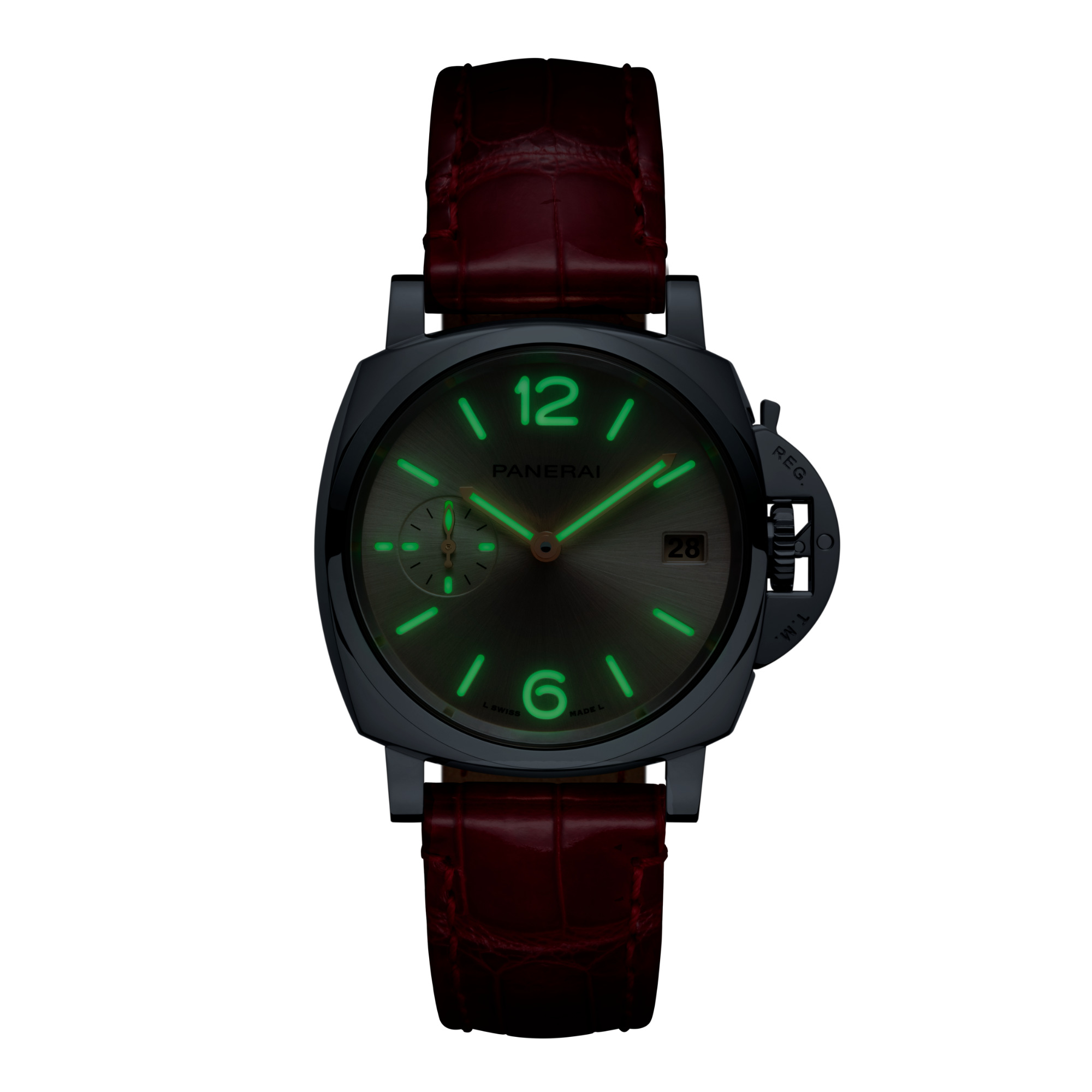 Rotes Alligatorlederband mit Ton-in-Ton Naht und Dornschließe