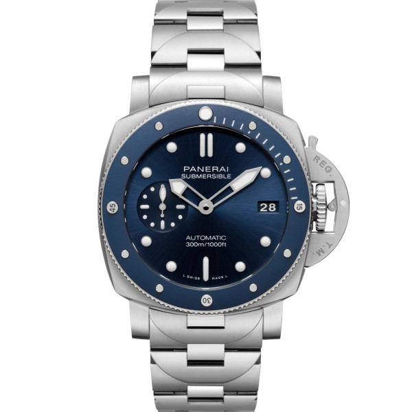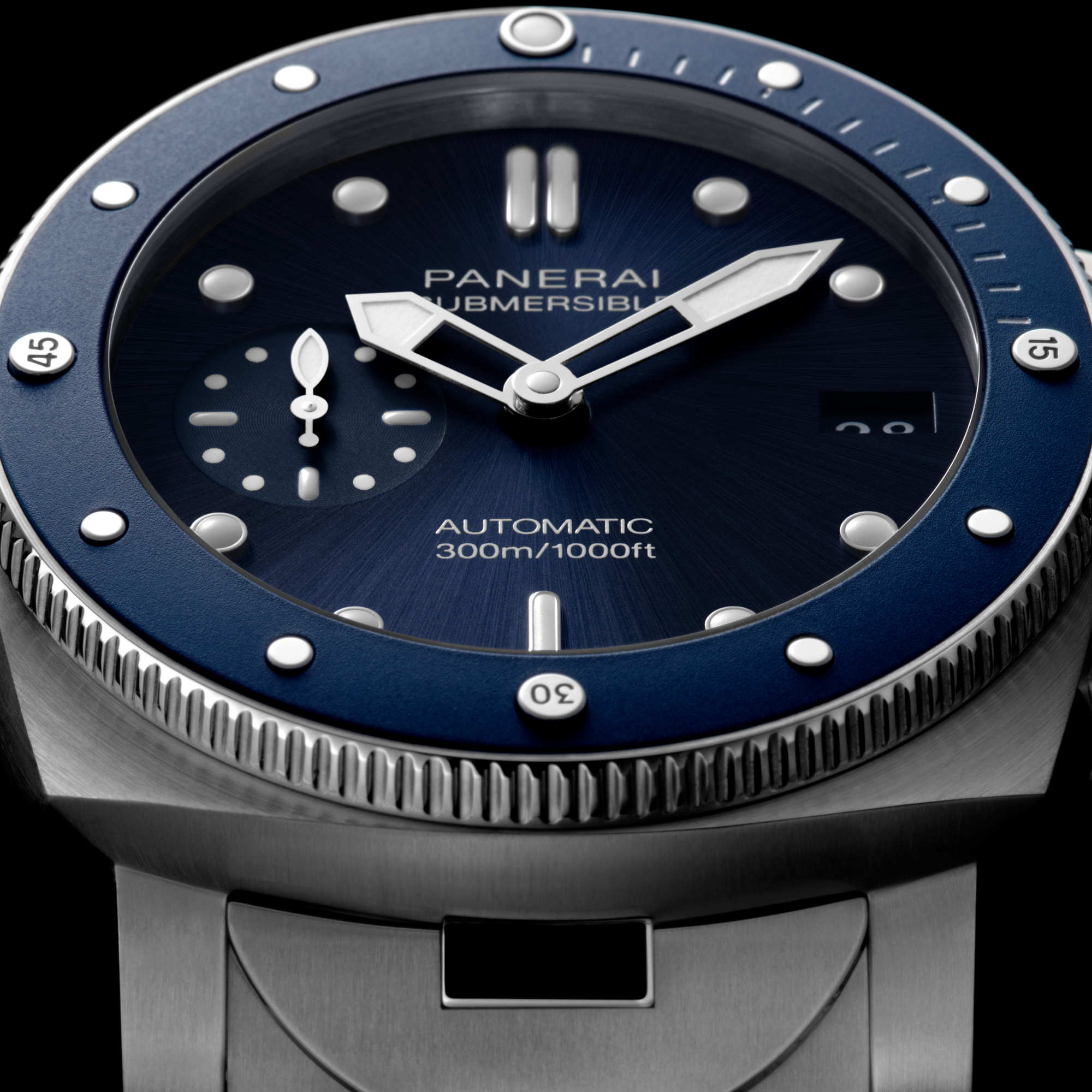 Ref. PAM02068 - Submersible, der maritime Geist von Panerai, abenteuerlicher Entdecker in seinem natürlichen Element. Kühnes Design, Hightech-Materialien, hohe Wasserdichtigkeit, mit einseitig drehbarer Lünette