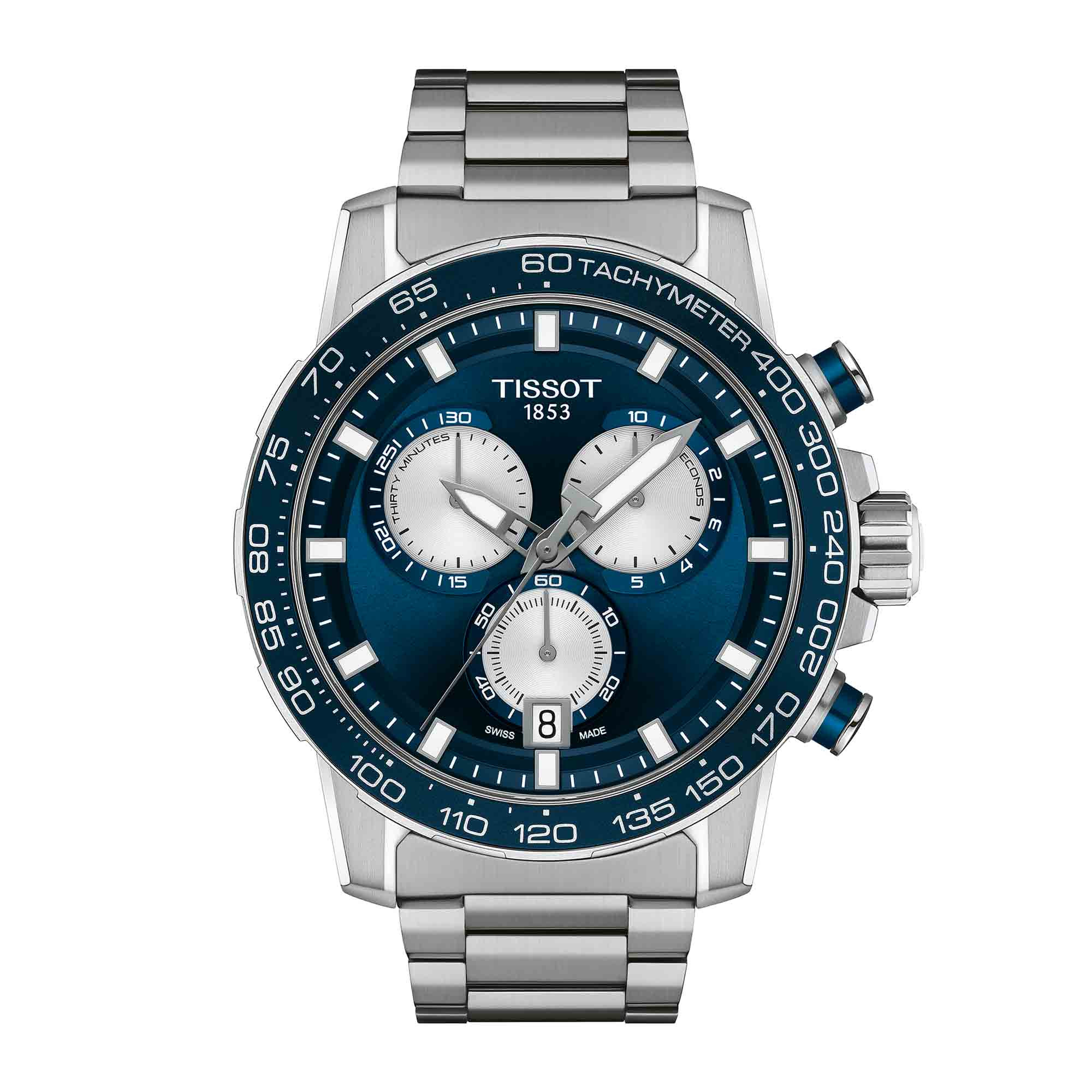 Blaues Zifferblatt mit kontraststark abgesetzten, silberfarbenen Indizes