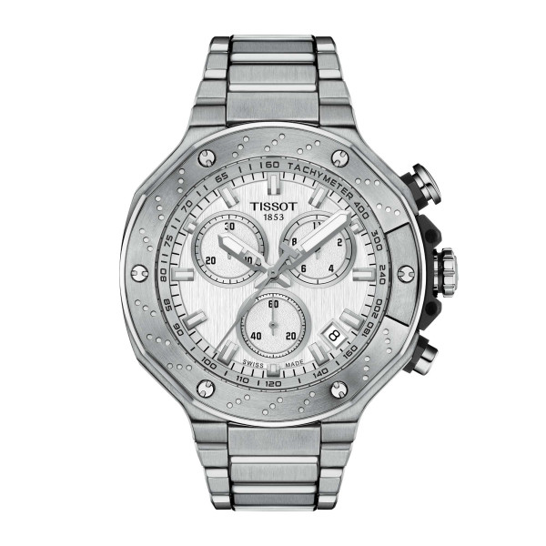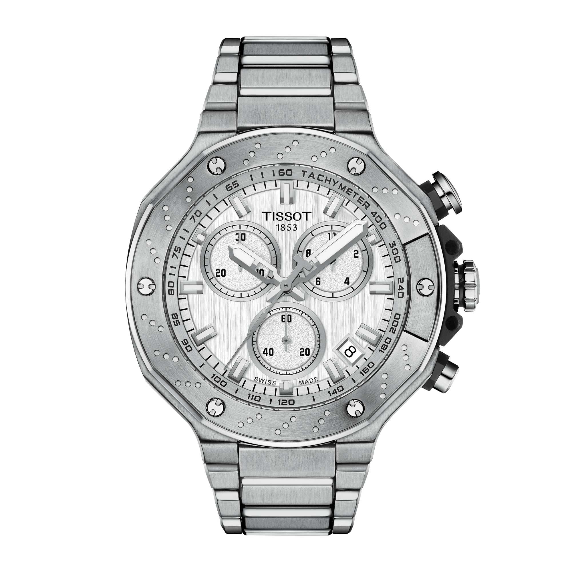 Ref. T141.417.11.031.00 - Die Tissot T-Race Chronograph zeigt sich im überarbeiteten Design, das nun ein eleganteres Zifferblatt aufweist – was der Uhr ein cleaneres Aussehen verleiht, ohne jedoch ihre sportlichen Wurzeln zu verleugnen.