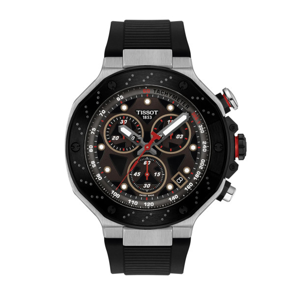 Ref. T141.417.27.081.00 - Zur Feier der bereits seit 2001 bestehenden MotoGP™-Partnerschaft wird die beliebte, von Rennmotorrädern inspirierte T-Race-Kollektion im Jahr 2025 um neue Referenzen erweitert, darunter dieser exklusive T-Race Chronograph mit Quarzwerk.