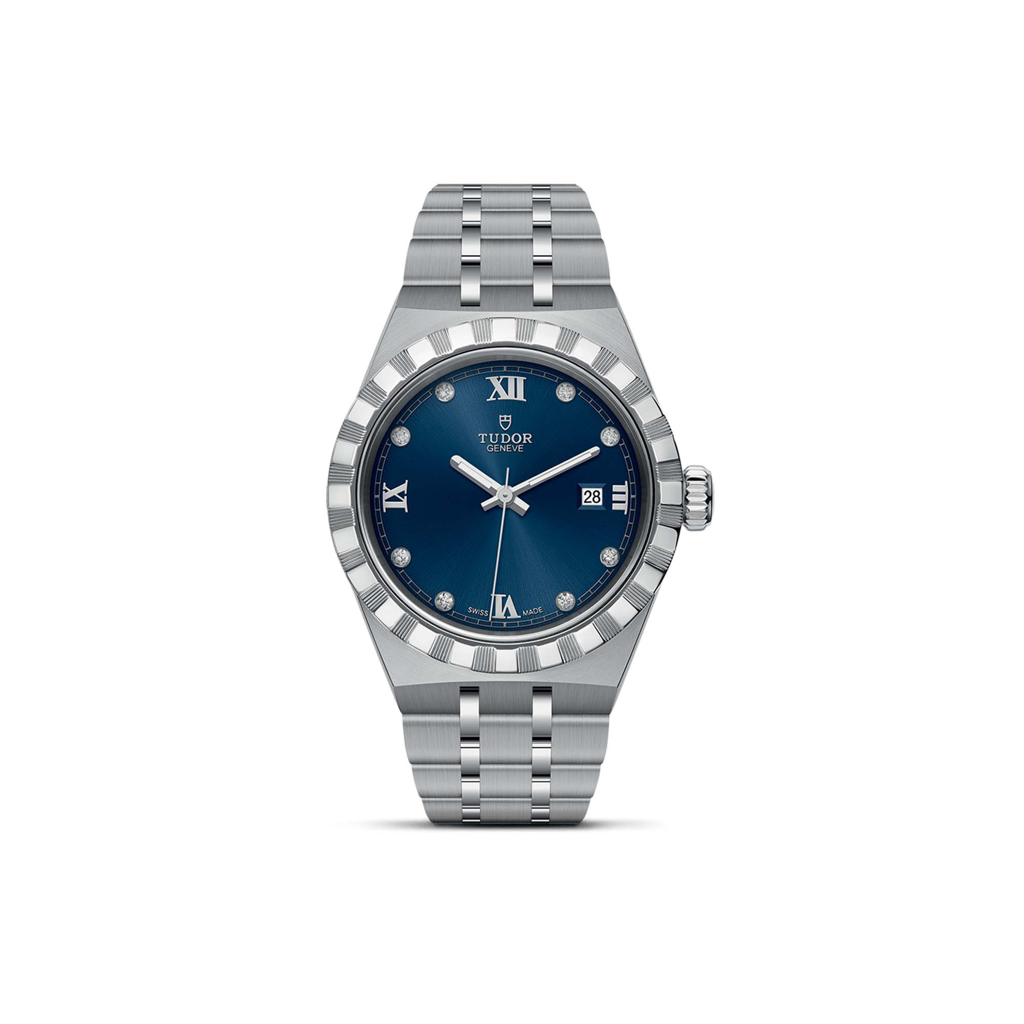 Ref. M28300-0007 - Der Name „Royal“ wurde von TUDOR erstmals in den 1950er-Jahren verwendet, um die herausragende Qualität seiner Armbanduhren hervorzuheben. Die TUDOR Royal Linie ist Teil dieses Erbes, da sie automatische sportlich-elegante Uhren mit integrierten Armbändern umfasst, die sowohl erschwinglich als auch kompromisslos sind. Die Royal ist in Edelstahl oder in Gold und Edelstahl sowie in vier Größen mit neun verschiedenen Zifferblättern erhältlich.