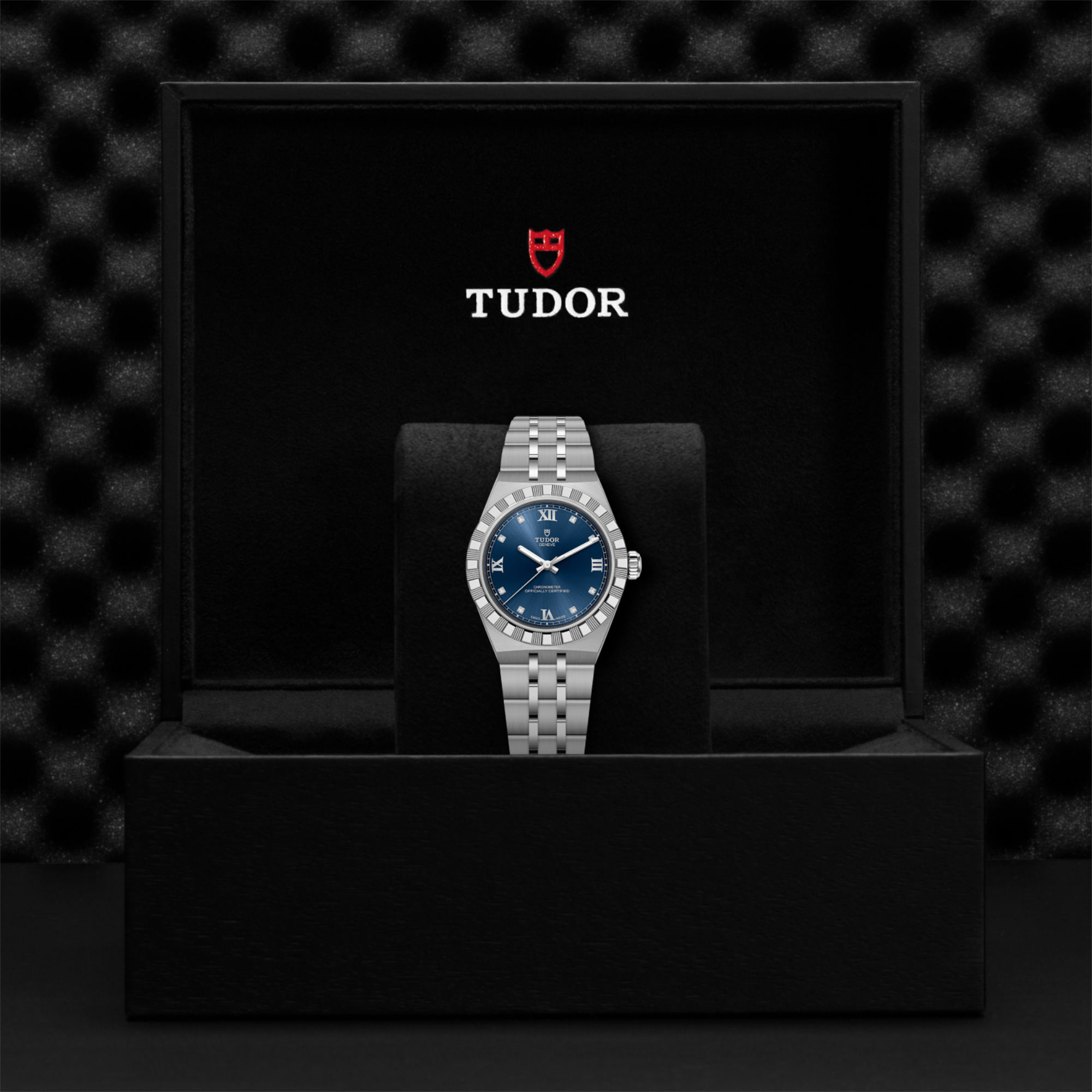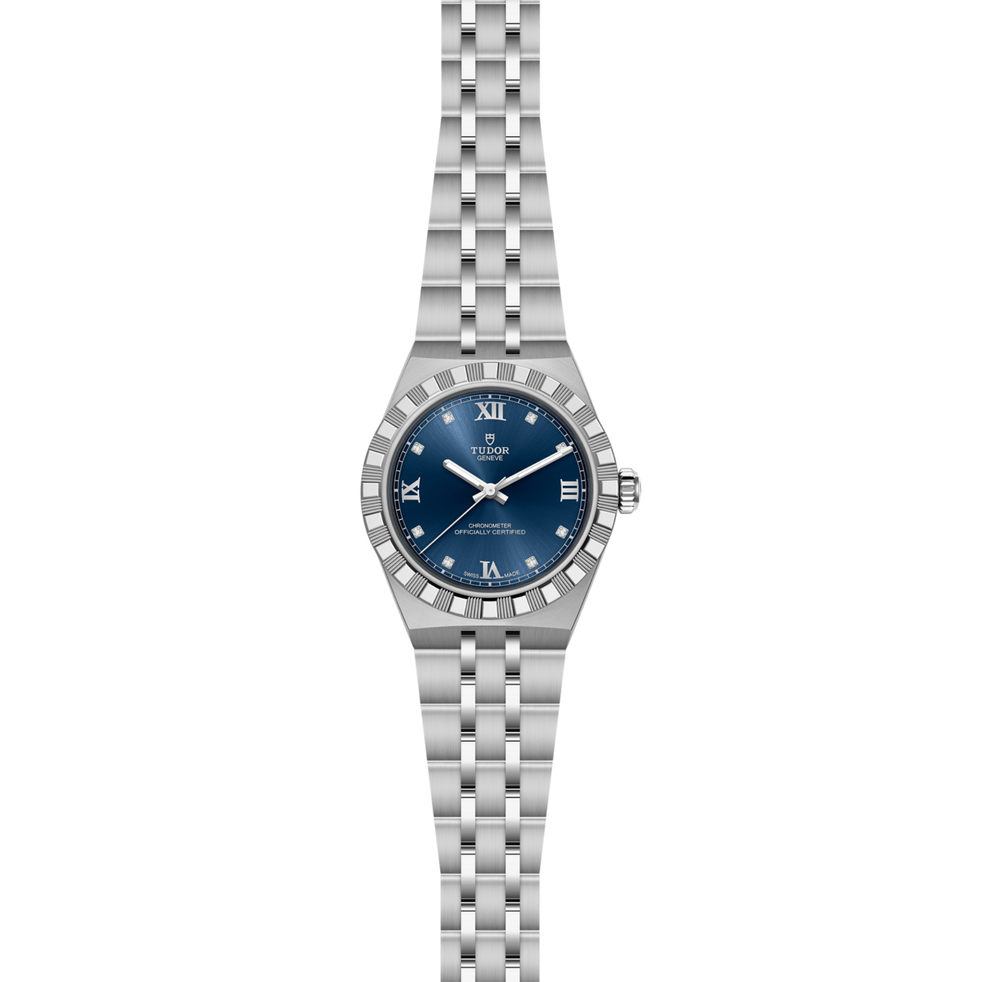 Ref. M2830A1A0-0001 - Mit ihrem integrierten Metallarmband, das nahtlos in das Gehäuse übergeht, zeichnet sich die TUDOR Royal durch ein fließendes und stilsicheres Design aus. Charakterisiert durch ihre drei breiten satinierten Bandelemente, zwischen denen zwei schmalere polierte Elemente positioniert sind, und ihre „T-fit“-Schließe, betont die glatte Beschaffenheit ihrer Oberflächen die große Aufmerksamkeit, die TUDOR dem Tragekomfort schenkt. Erhältlich in Edelstahl oder mit abwechselnden Elementen in Edelstahl und Gelbgold, sprechen die Modelle dieser Linie mit ihrer fein bearbeiteten Oberfläche jeden Geschmack an.