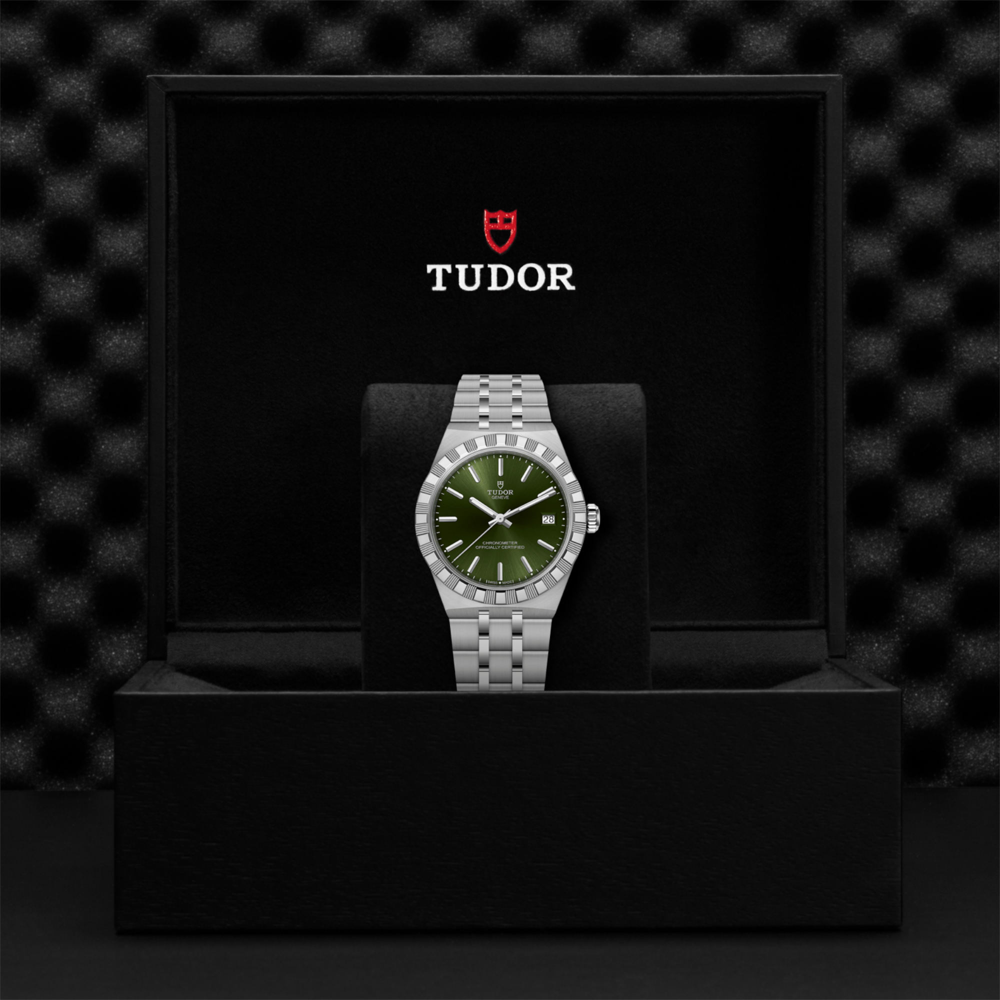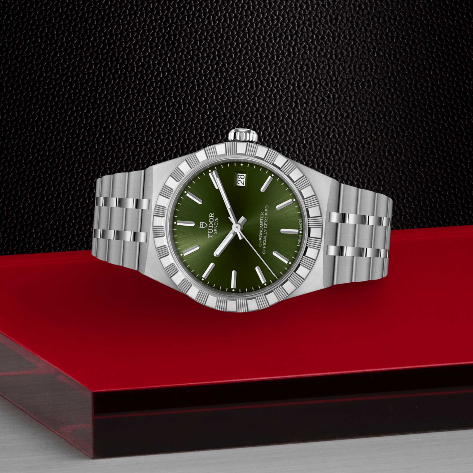 Ref. M2836C1A0-0103 - Mit ihrem integrierten Metallarmband, das nahtlos in das Gehäuse übergeht, zeichnet sich die TUDOR Royal durch ein fließendes und stilsicheres Design aus. Charakterisiert durch ihre drei breiten satinierten Bandelemente, zwischen denen zwei schmalere polierte Elemente positioniert sind, und ihre „T-fit“-Schließe, betont die glatte Beschaffenheit ihrer Oberflächen die große Aufmerksamkeit, die TUDOR dem Tragekomfort schenkt. Erhältlich in Edelstahl oder mit abwechselnden Elementen in Edelstahl und Gelbgold, sprechen die Modelle dieser Linie mit ihrer fein bearbeiteten Oberfläche jeden Geschmack an.