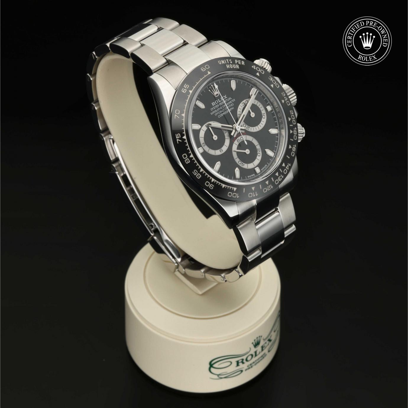 Heute ist dieser legendäre Chronograph bekannt für seine Zuverlässigkeit, die er seinem leistungsstarken mechanischen Uhrwerk verdankt, das vollständig von Rolex entwickelt und hergestellt wurde. Mit der Tachymeterlünette kann der Träger Zeitabstände messen oder eine Durchschnittsgeschwindigkeit ermitteln.