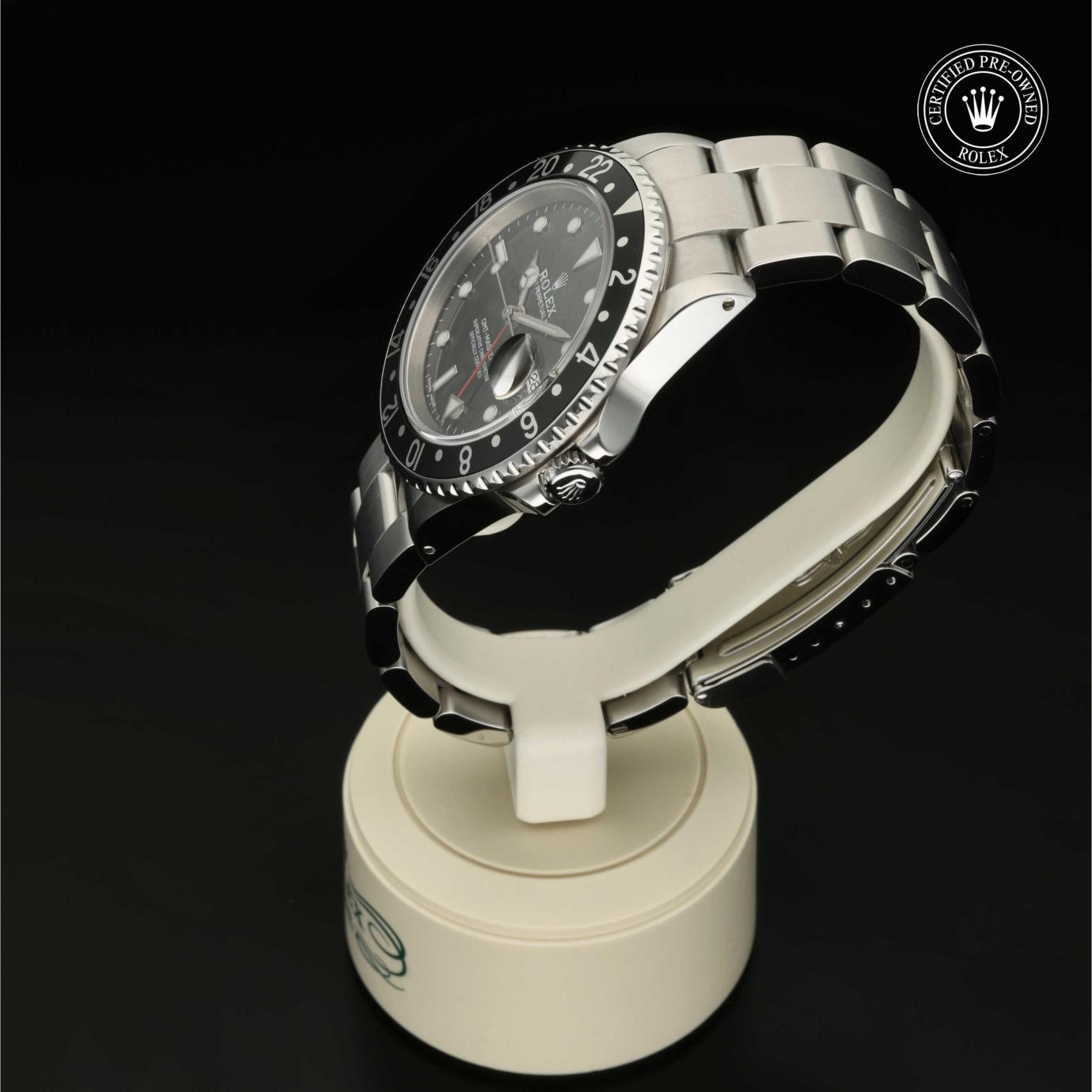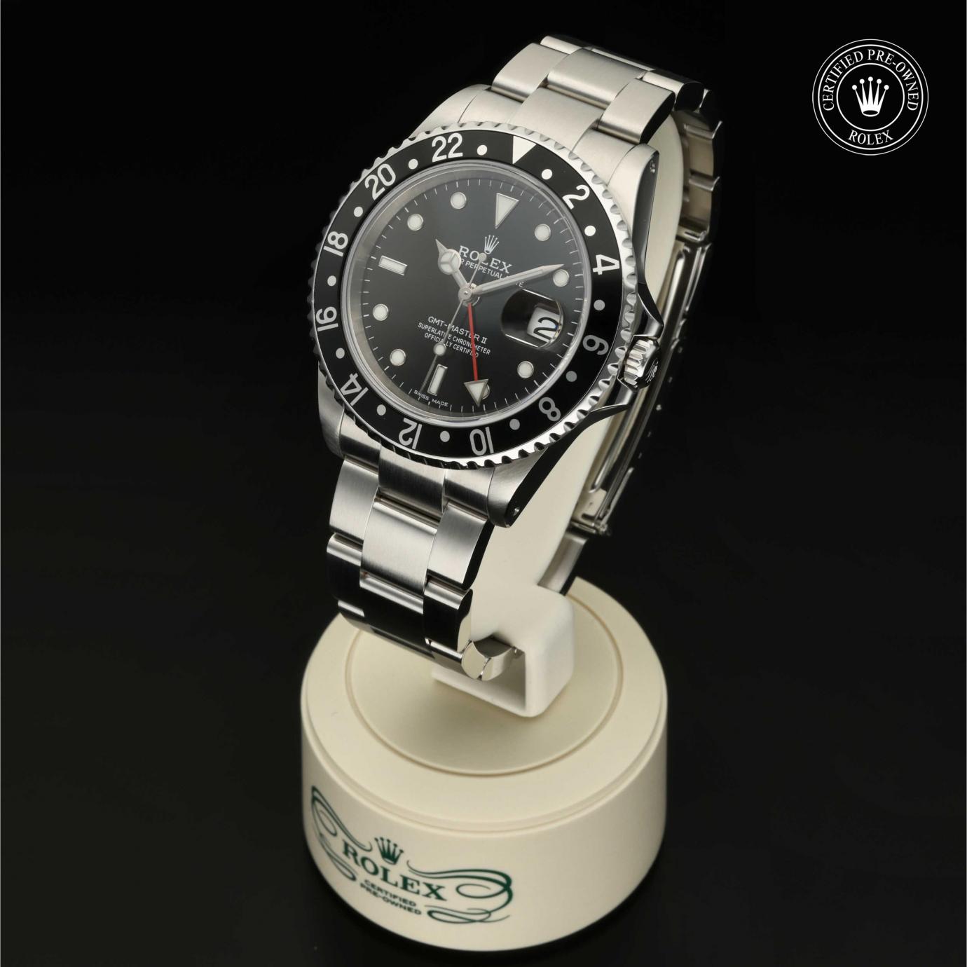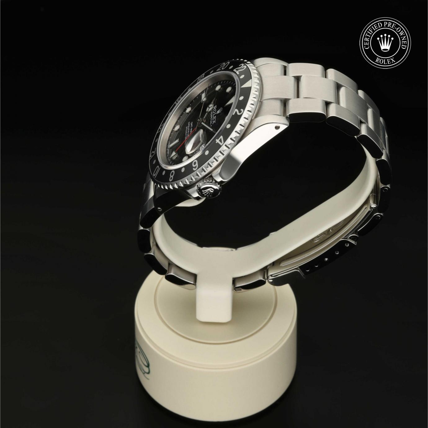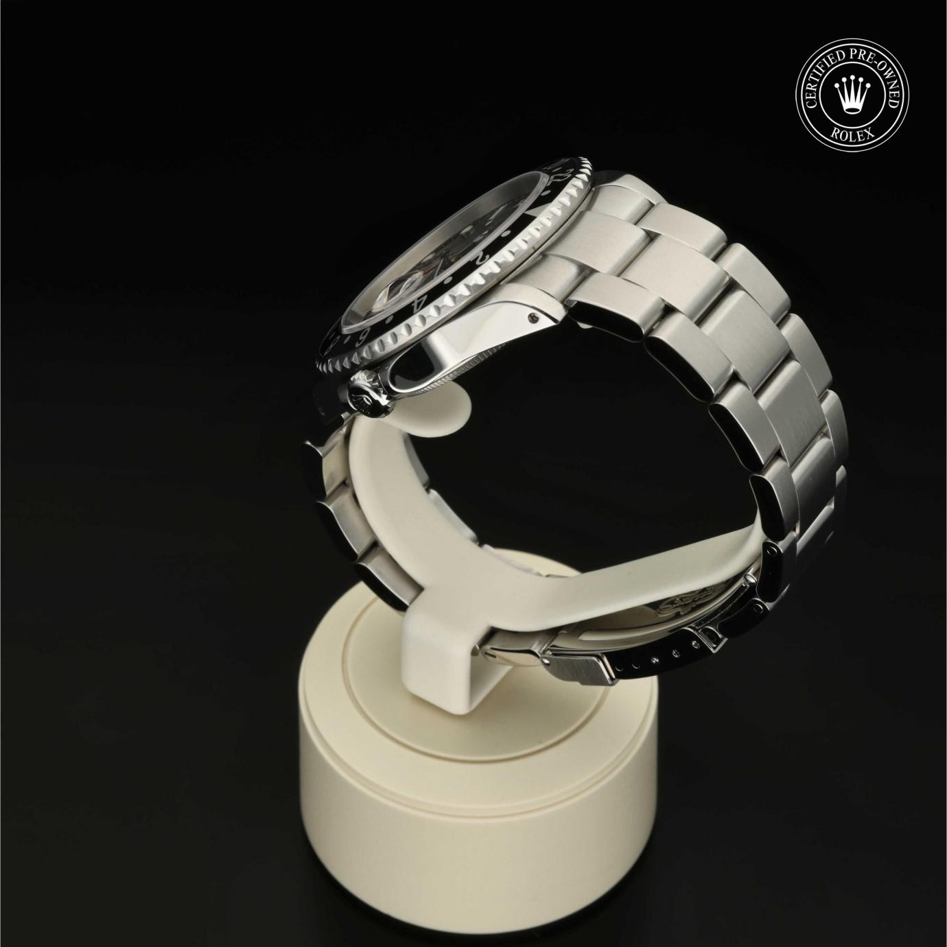 Das 1982 vorgestellte Modell verfügt über die legendäre zweifarbige Zahlenscheibe, die heutzutage aus Hightech-Keramik besteht, und zeigt gleichzeitig die Uhrzeit von zwei Zeitzonen an. Sie trat die unmittelbare Nachfolge der originalen GMT‑Master von 1955 an, die rasch von Transatlantik-Piloten als Navigationshilfe eingesetzt wurde.
