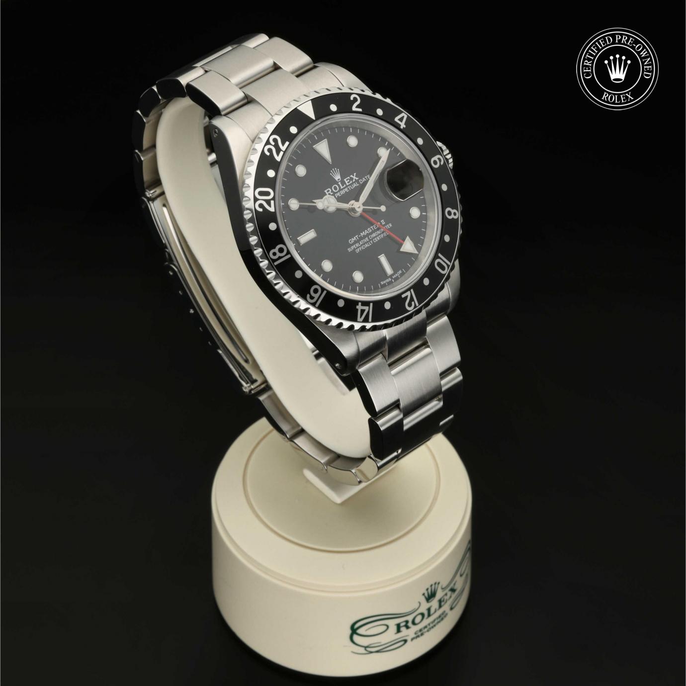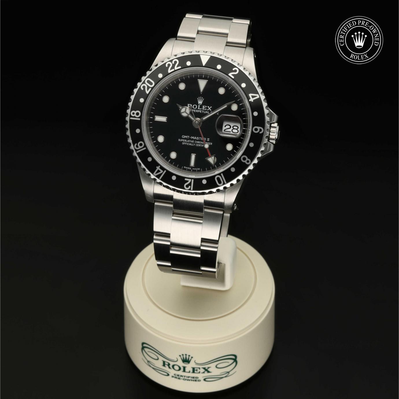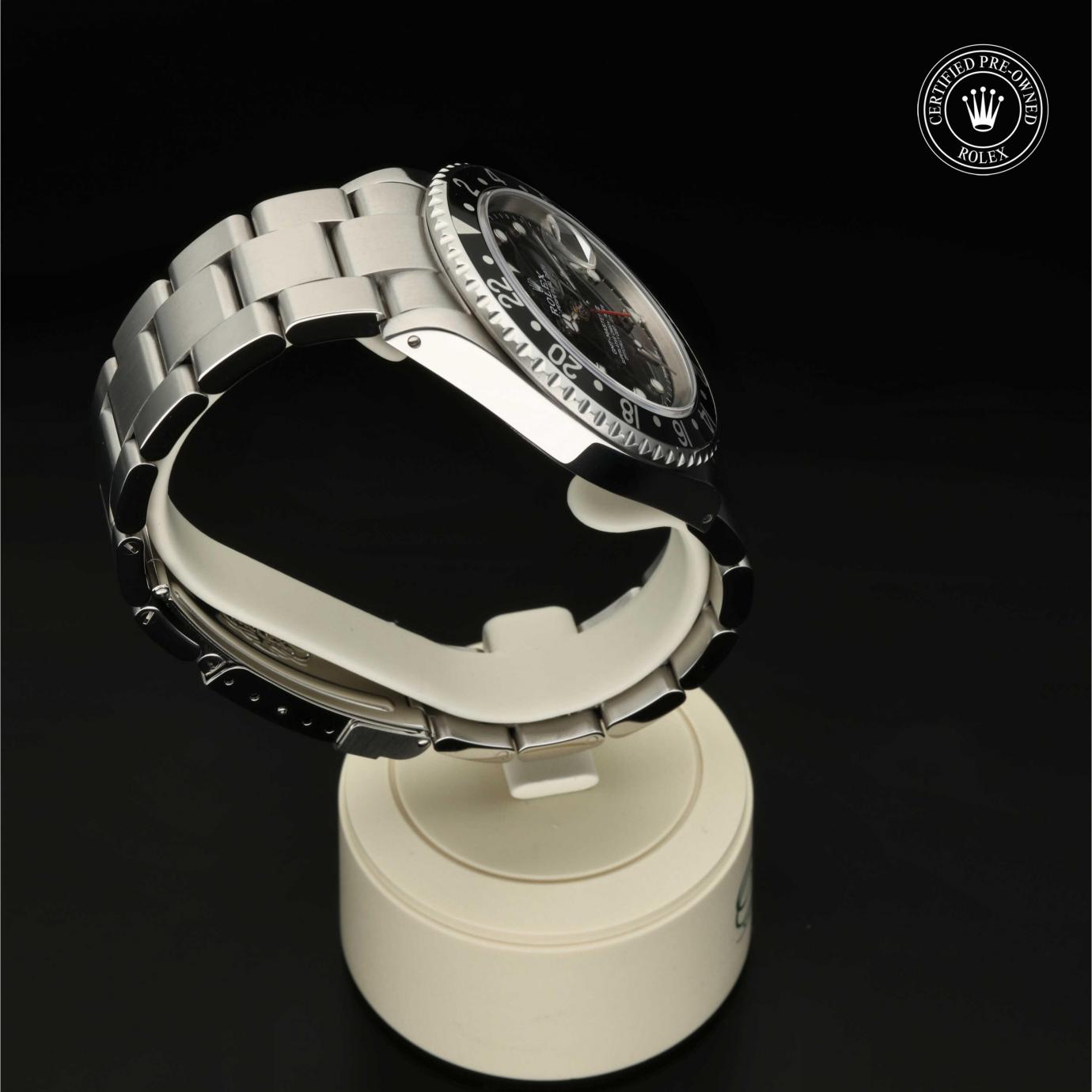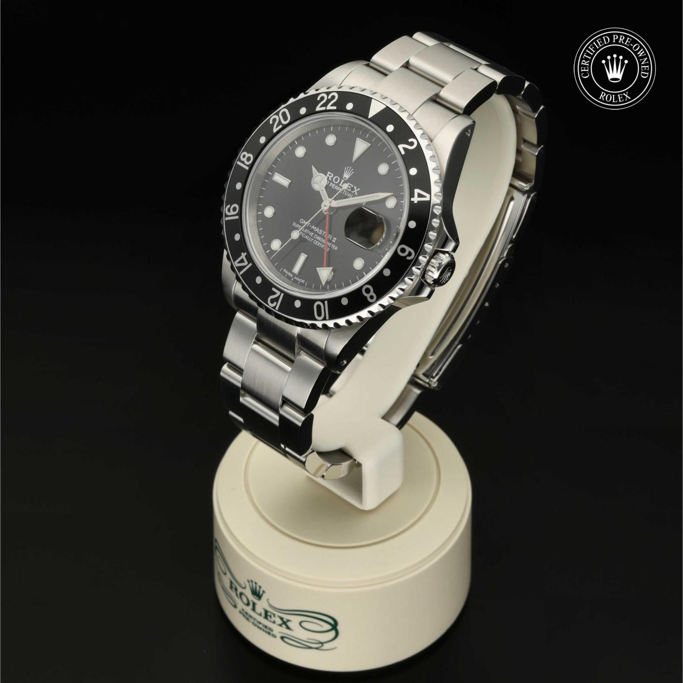 Das 1982 vorgestellte Modell verfügt über die legendäre zweifarbige Zahlenscheibe, die heutzutage aus Hightech-Keramik besteht, und zeigt gleichzeitig die Uhrzeit von zwei Zeitzonen an. Sie trat die unmittelbare Nachfolge der originalen GMT‑Master von 1955 an, die rasch von Transatlantik-Piloten als Navigationshilfe eingesetzt wurde.