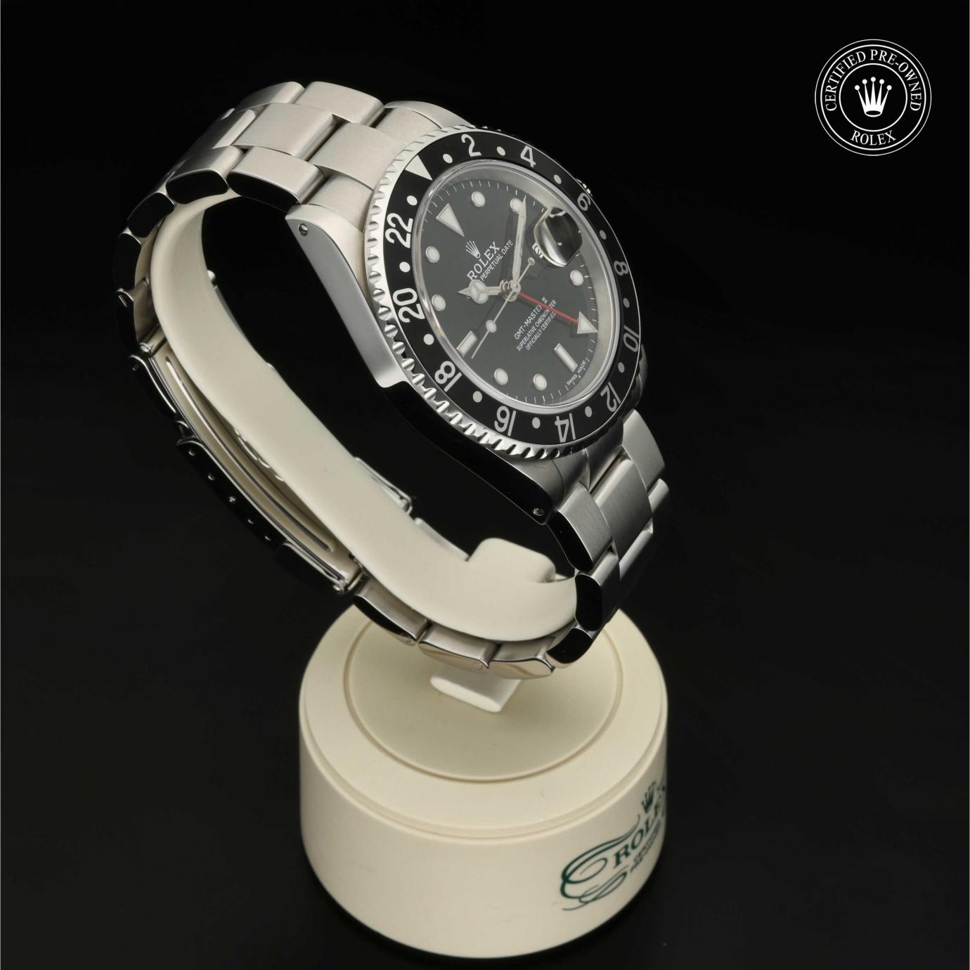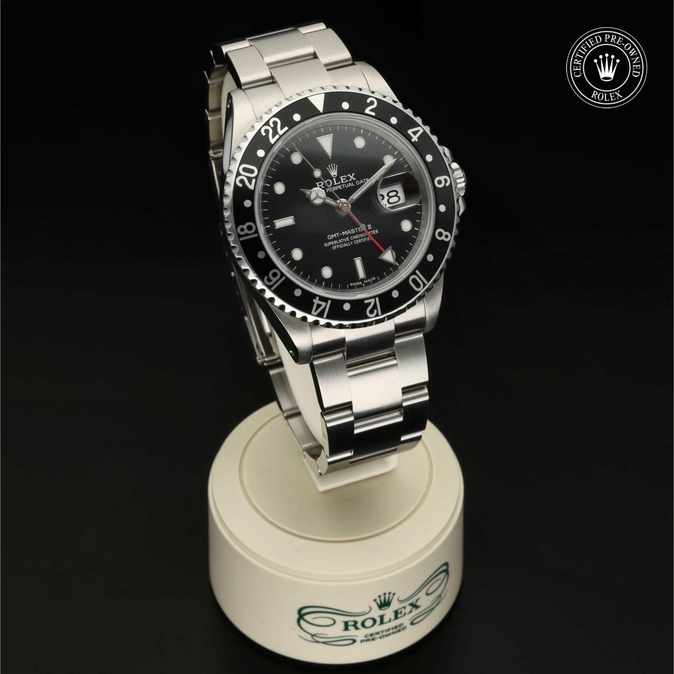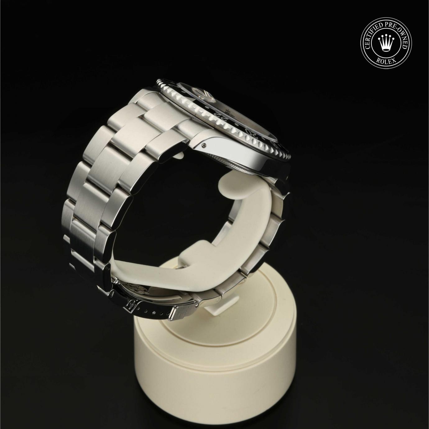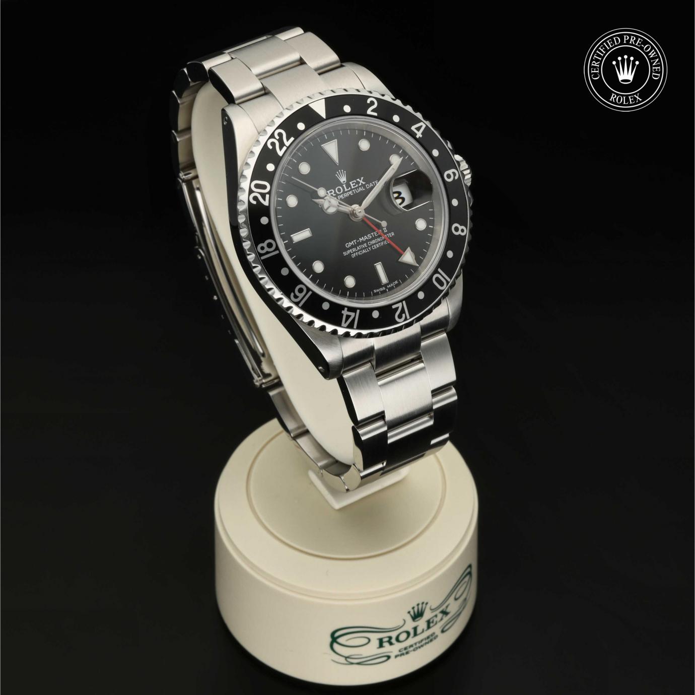 Das 1982 vorgestellte Modell verfügt über die legendäre zweifarbige Zahlenscheibe, die heutzutage aus Hightech-Keramik besteht, und zeigt gleichzeitig die Uhrzeit von zwei Zeitzonen an. Sie trat die unmittelbare Nachfolge der originalen GMT‑Master von 1955 an, die rasch von Transatlantik-Piloten als Navigationshilfe eingesetzt wurde.