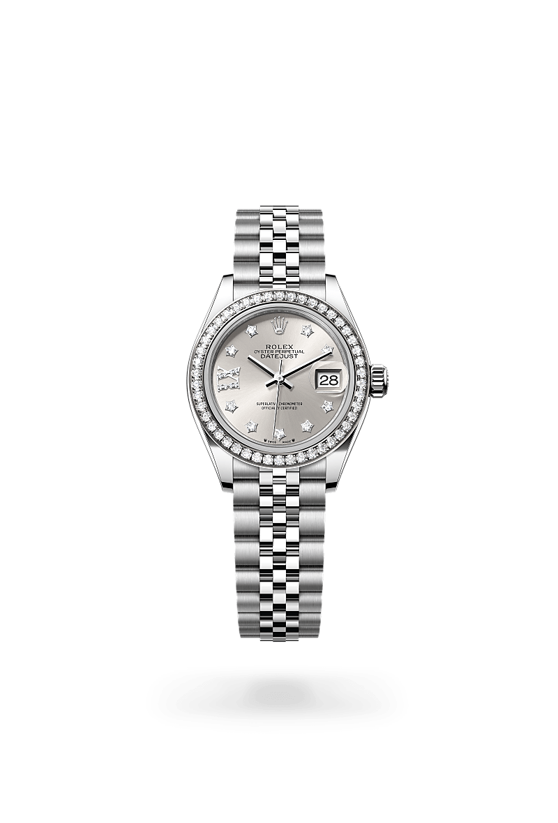 Rolex Lady-Datejust Oyster, 28 mm, Edelstahl Oystersteel und Weißgold mit Diamanten M279384RBR‑0021